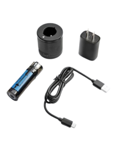 Batería de repuesto, soporte de carga y cable para el sistema FXONE. Tiene un anillo LED de 4 etapas que indica la duración de la batería. Con este kit completo, puedes cargar uno mientras usas otro.